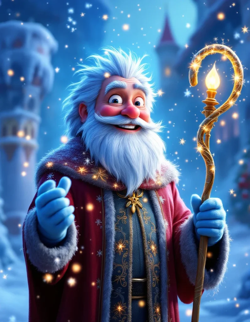 Dann nickt er – und mit einer letzten Bewegung öffnet er euch das große Tor. Draußen wartet die Welt in goldenem Licht. Das Licht umhüllt Dr. Frost. Seine eisige Gestalt beginnt zu schmelzen, nicht zu Wasser, sondern zu Wärme. Das kalte Blau seiner Robe wird zu tiefem Rot, der Froststab verwandelt sich in einen goldenen Hirtenstab. Wo eben noch Frostherrschaft war, steht nun jemand anderes – mit weißem Bart und einem gütigen Lächeln.